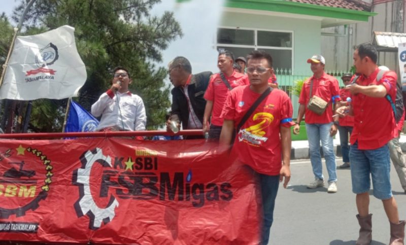 Tasikmalaya, MNP – Ratusan massa perwakilan dari FIKEP KSBI, KASBI bagian dari serikat Buruh dan ormas Gapura melakukan aksi demo ke Hotel Crown Kota Tasikmalaya, Rabu (16/10/2024).