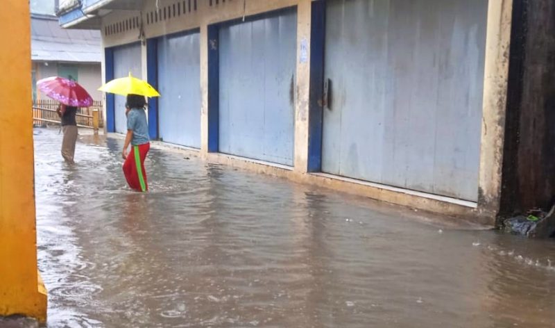 Bahkan air naik ke permukiman warga Kampung Pajangan dan Kampung Kereteg dengan ketinggian air di jalan sekitar lutut orang dewasa, Jum’at (07/07/2023).