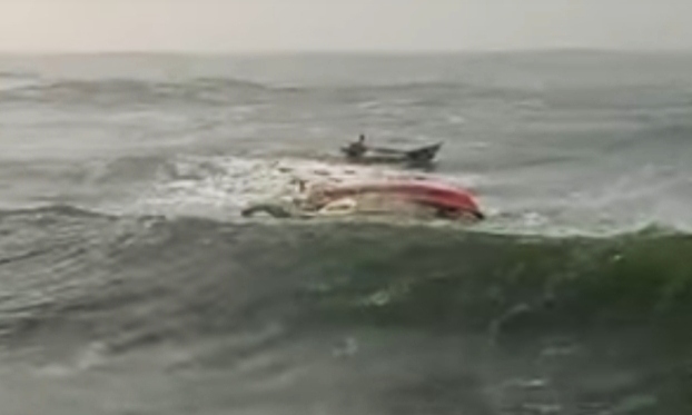 “Tadi pagi ada dua perahu yang pulang melaut dihantam ombak saat masuk dermaga Pamayangsari, satu perahu terbalik dan rusak berat dan satu perahu lagi selamat.