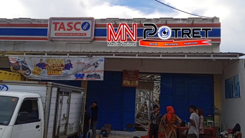 Tasikmalaya, MNP – Bagian atap bangunan minimarket Tasco yang berlokasi di Kelurahan Sambongjaya Kecamatan Mangkubumi Kota Tasikmalaya tiba tiba ambruk.