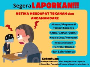 Imbauan tersebut berbunyi “Kepada Seluruh Warga ASN, P3K, Honorer, orang tua siswa penerima beasiswa di Kabupaten Enrekang yang mendapatkan ancaman atau tekanan dari atasan atau Pimpinan di tempat kerjanya, Kadis, Camat, Lurah, Kades, Penyuluh, Kepala Sekolah, Penyalur Bansos dan lainnya segera Laporkan”.