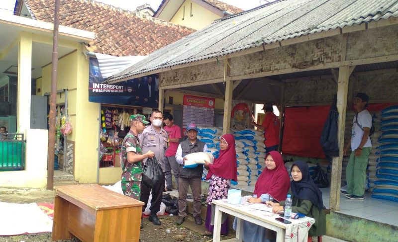 Tasikmalaya, MNP – Bhabinkamtibmas Desa Karangmulya Polsek Jamanis AIPTU Gatot dan Babinsa SERDA M Irfan memantau pelaksanaan  pendistribusian Bantuan Pemerintah Non Tunai (BPNT) periode Juni-Juli.