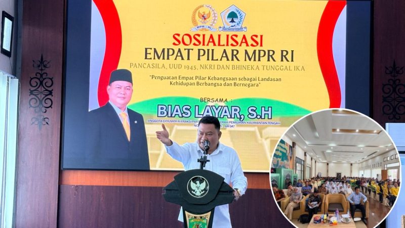 BARITO TIMUR, MNP — Anggota DPR RI dari Komisi XIII, Bias Layar, menggelar kegiatan Sosialisasi 4 Pilar Kebangsaan MPR RI pada Senin (27/4/2026) di Rumah Jabatan Bupati Barito Timur.