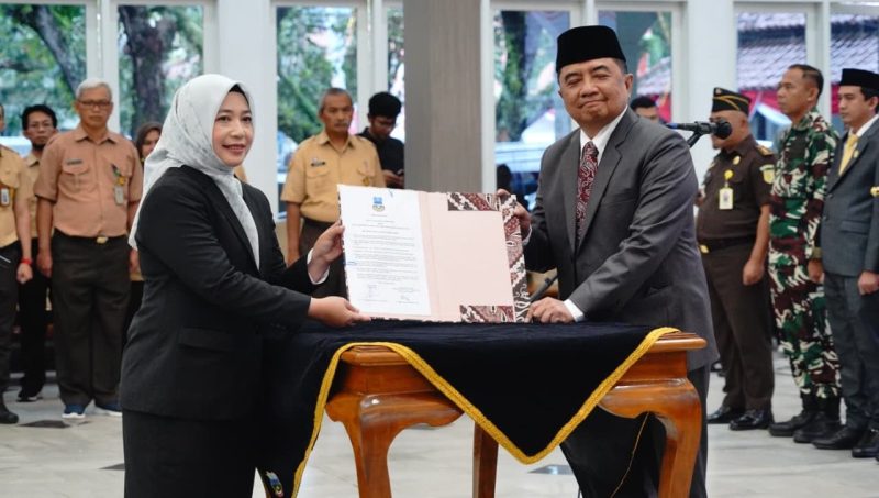Garut, MNP – Bupati Garut, Abdusy Syakur Amin, melantik 13 Pegawai Negeri Sipil (PNS) dalam Jabatan Pimpinan Tinggi Pratama (JPTP) yang berlangsung di Gedung Pendopo, Kecamatan Garut Kota, Kabupaten Garut, Kamis (14/8/2025).