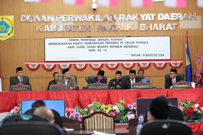 Dalam agenda Tunggal tersebut tentang mendengarkan Pidato Kenegaraan Presiden RI di Ruang Paripurna, Kantor DPRD Pakpak Bharat.