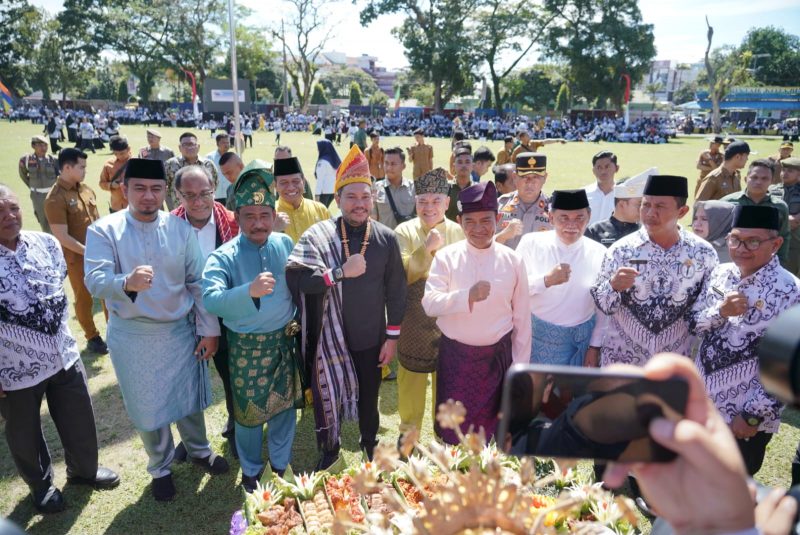 Pakpak Bharat, MNP – Bupati Pakpak Bharat, Franc Bernhard Tumanggor menghadiri Peringatan Hari Guru Nasional (HGN) Tingkat Provinsi Sumatera Utara yang dipusatkan di Lapangan Merdeka, Kota Binjai (27/11/23).