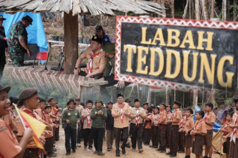 Pakpak Bharat, MNP – Bupati Pakpak Bharat, Franc Bernhard Tumanggor meninjau Perkemahan Jumat Sabtu Minggu (PERJUSAMI) yang diselenggarakan Kwartir Cabang Pramuka Pakpak Bharat di Kawasan Eko Wisata Hutan Kapur, desa Sibagindar, kecamatan Pagindar, Sabtu (03/08/2024).
