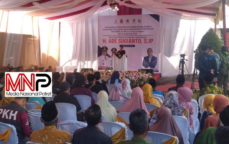 Dalam sambutanya Bupati Tasikmalaya H Ade Sugianto mengungkapkan, program sambungan air minum gratis bagi masyarakat tak mampu ini diharapkan bisa berjalan dengan baik dan penuh tanggung jawab.