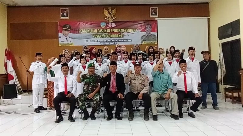 Tasikmalaya, MNP – Camat Bungursari kota Tasikmalaya Sodik Sunandi,S.IP,.M, Si resmi mengukuhkan Pasukan Pengibar Bendera Merah Putih (Paskibraka) yang akan berlangsung di Lapangan Sukamulya Aboh pada 17 Agustus 2023.