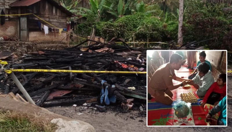 Pakpak Bharat, MNP – Camat Kerajaan Febriansyah Boangmanalu bersama jajaran didampingi aparat desa Perpulungen turun langsung melihat dan mengunjungi korban kebakaran.