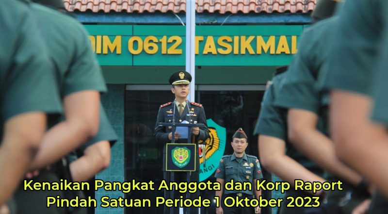 Tasikmalaya, MNP – Dandim 0612/Tasikmalaya Letkol Inf Raden Henra Sukmadjidibrata, S.I.P memimpin langsung Korp Raport Masuk Satuan dan Pelaporan Kenaikan Pangkat Periode 1 Oktober 2023 di Lapangan Makodim 0612/Tasikmalaya, Senin (2/10/2023).