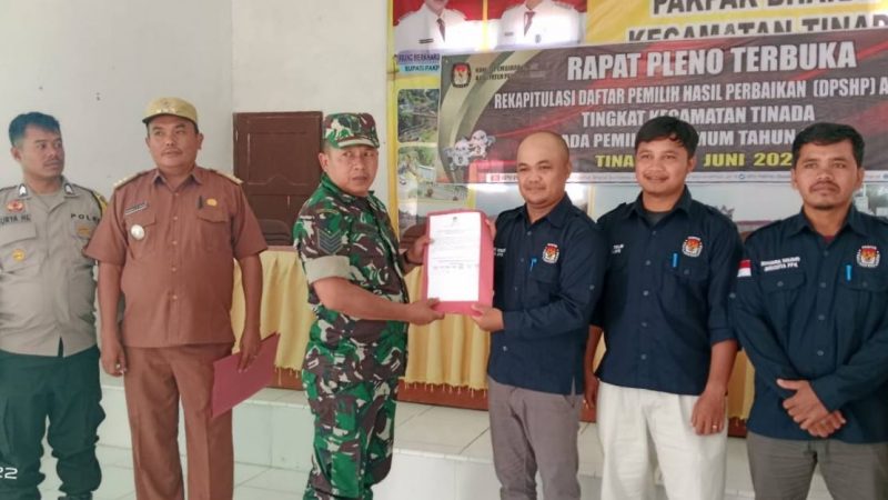 Dari hasil pleno tersebut, ketua didampingi seluruh anggota PPK kecamatan Tinada disimpulkan dan menuangkan berita acara rapat pleno kedalam daftar Rekapitulasi perubahan pemilih untuk DPSHP Akhir.