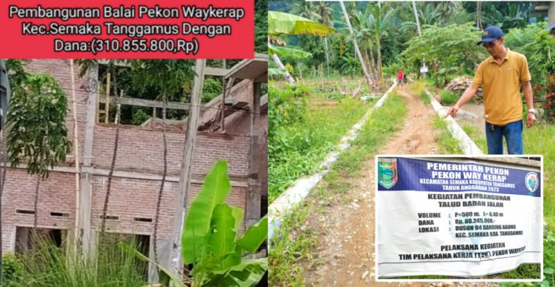 “Pertama, pembangunan balai pekon yang dikerjakan hanya beberapa persen saja sampai saat ini, sementara pekerjaan tersebut sudah tersendat pasalnya sudah kurang lebih dua minggu tukang tidak lagi bekerja itu satu,” ucapnya, Jum,at (08/03/2024).