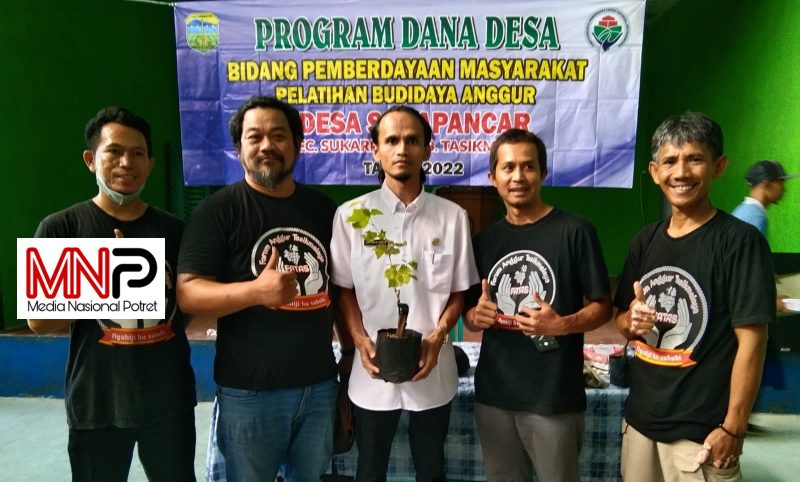 Potret Tasikmalaya – Forum Anggur Tasikmalaya (FATAS) dan Komunitas Anggur Parahiangan (APAR) dari Kabupaten Bandung jadi pemateri pelatihan budidaya anggur kepada Kelompok Tani Subur Tani Lima Desa Sukapancar Kecamatan Sukaresik Kabupaten Tasikmalaya.