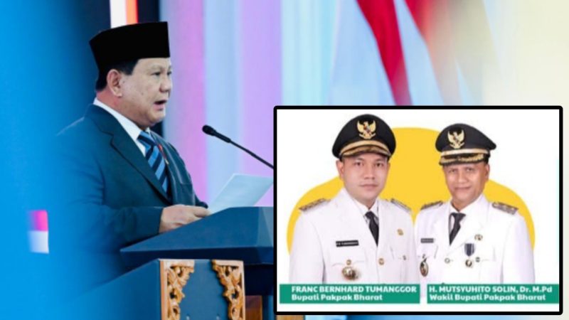 Pakpak Bharat, MNP – Presiden Republik Indonesia, Prabowo Subianto resmi melantik Franc Bernhard Tumanggor dan H Mutsyuhito Solin, Dr, M.Pd sebagai Bupati dan Wakil Bupati Pakpak Bharat Masa Jabatan 2025-2030 di Istana Negara hari ini (20/02/2025). Prabowo Subianto mengingatkan bahwa Pimpinan Daerah adalah abdi rakyat.