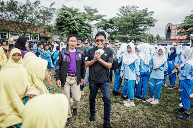 Bupati Ciamis, Herdiat Sunarya menghadiri dan melepas secara langsung para peserta jalan sehat didampingi Ketua KONI Ciamis, Camat Kawali serta Ketua PGRI Kecamatan Kawali.