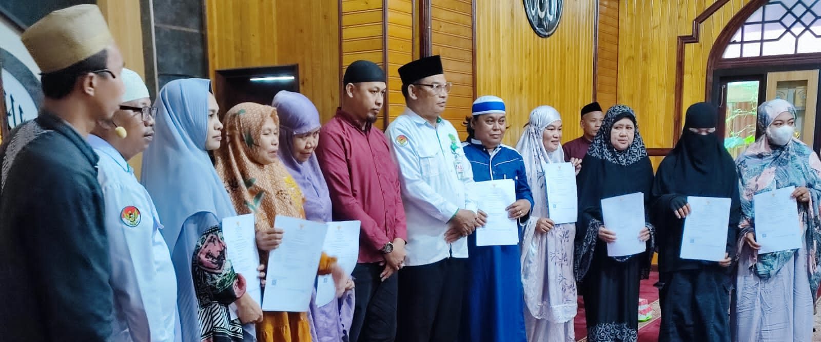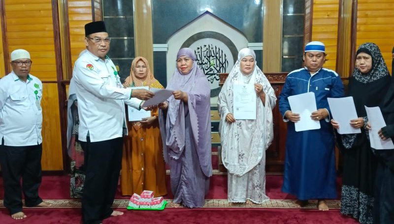Sertifikat halal yang telah terbit diserahkan oleh Kepala Kantor Urusan Agama (KUA) Kec. Tellu Limpoe kepada pelaku usaha di Masjid Ar-Rahman Baula.