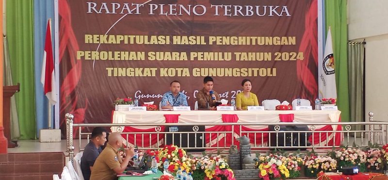 Hadir dalam Rapat Pleno Terbuka hari ketiga Komisioner KPU Kota Gunungsitoli Cardinal P Mendrofa di dampingi Komisioner Hepy Suryani Harefa, Juliman Harefa, Ketua Bawaslu Kota Gunungsitoli Elmizarti, Saksi peserta Pemilu, serta media masa.