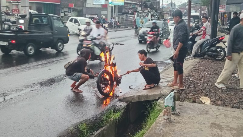 Tasikmalaya, MNP – Sebuah sepeda motor mendadak terbakar di Jalan AH Nasution, wilayah Mangkubumi, Kota Tasikmalaya, Jumat siang (04/07/2025). Insiden ini sempat menarik perhatian warga dan pengguna jalan yang melintas.