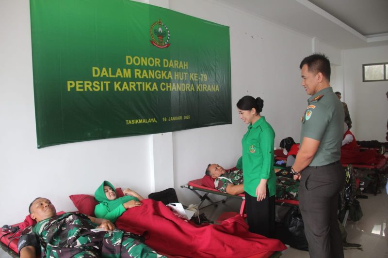 Tasikmalaya, MNP – Dalam rangka memperingati Hari Ulang Tahun (HUT) Persit Kartika Chandra Kirana ke-79, Kodim 0612/Tasikmalaya mengadakan kegiatan bakti sosial berupa donor darah yang bertempat di Markas Kodim 0612/Tasikmalaya, Kamis (16/01/2025).
