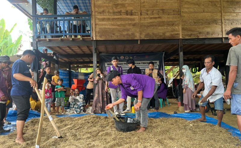 Kegiatan ini bertujuan meningkatkan kemandirian petani dengan mengajarkan pembuatan dan perbanyakan Trichoderma menggunakan media jagung, serta praktik pembuatan Trichokompos.