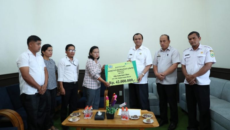 Kepada ahli waris almarhum, hari ini diserahkan santunan Jaminan Kematian oleh BPJS Ketenagakerjaan sebesar total Rp.42.000.000,-, sebagai bentuk kepedulian Pemerintah bagi setiap insan warganya termasuk bagi pegawai THL.