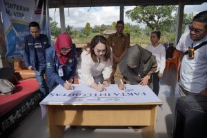 Nampak hadir anggota Komisi IX DPR RI Delia Pratiwi br Sitepu, SJ dan Direktur Poltekes, RR Sri Arini, M.Keb beserta undangan lainnya menanda tangani fakta integritas pelaksanaan Germas, Rabu (26/07/2023).