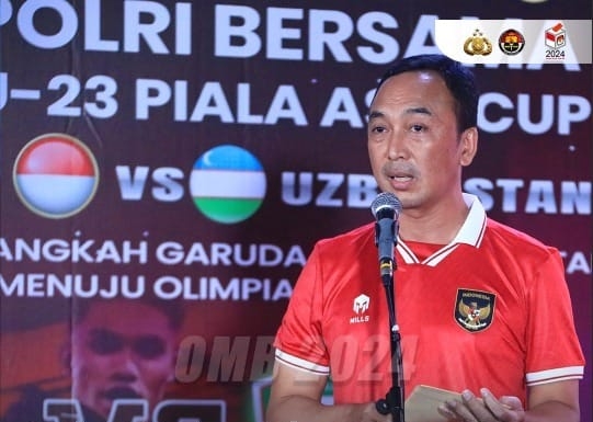 Jakarta, MNP – Divisi Humas Polri menggelar nonton bareng atau nobar semifinal Tim Nasional Indonesia pada kejuaraan sepak bola internasional Asian Football Confederation (AFC) U-23 di Qatar.