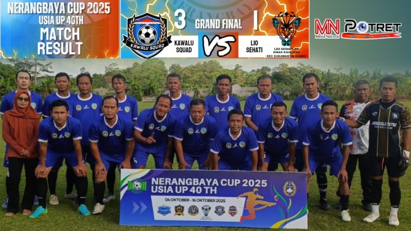 Ciamis, MNP – Gelaran Event Nerangbaya Cup 2025 untuk usia Up 40 Tahun sukses ditutup dengan pertandingan final yang mempertemukan dua tim kuat dari wilayah berbeda, yaitu Kawalu Squad (Kota Tasikmalaya) melawan LIO Sehati Sukamantri (Kabupaten Ciamis).