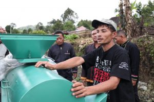 “Ini dia pak mesin pemipil jagungnya,” ucap Mike Ferdi Banurea, SP saat menyerahkan mesin ini.