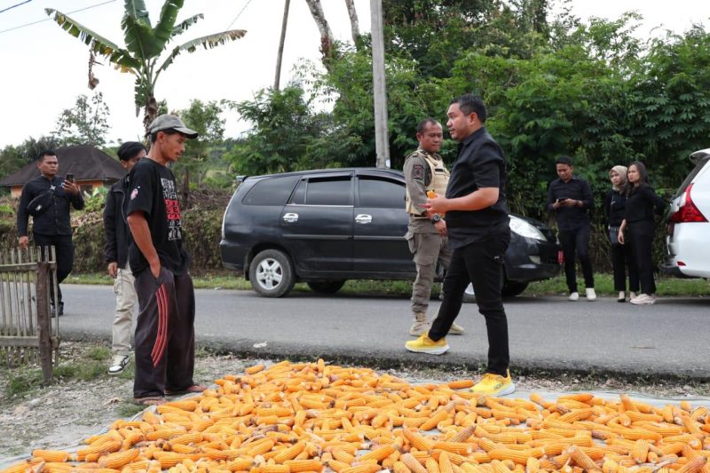 Sontak saja ernalaba merasa kaget. Dia yang sedang sibuk menjemur hasil panen jagungnya terlihat canggung didatangi orang nomor satu di Kabipaten pakpak Bharat ini.