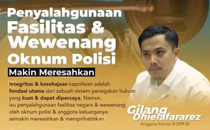 “Namun, isu penyalahgunaan fasilitas negara dan wewenang oleh oknum polisi dan anggota keluarganya semakin meresahkan dan memprihatinkan,” ujar Gilang Jumat (8/9/2023).