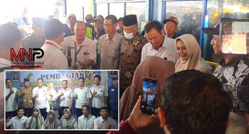 Pembagian beras dilakukan secara simbolis oleh Plt Bupati Pemalang, Mansur Hidayat kepada salah seorang nelayan di KUD Mina Misoyo Makmur Desa Asemdoyong, Selasa, (10/01/2023).