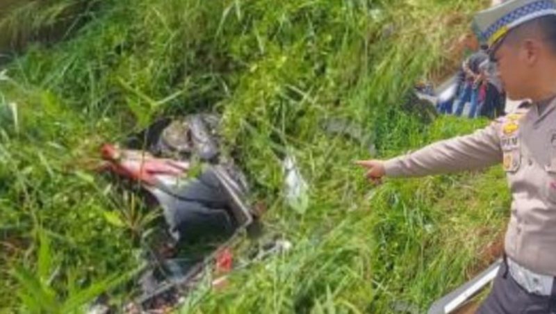IPTU Ipan mengatakan, sepeda motor terpental dan masuk kedalam jurang sedalam 3 meter dan meninggal ditempat. Korban dibawa ke rumah sakit untuk pemeriksaan.