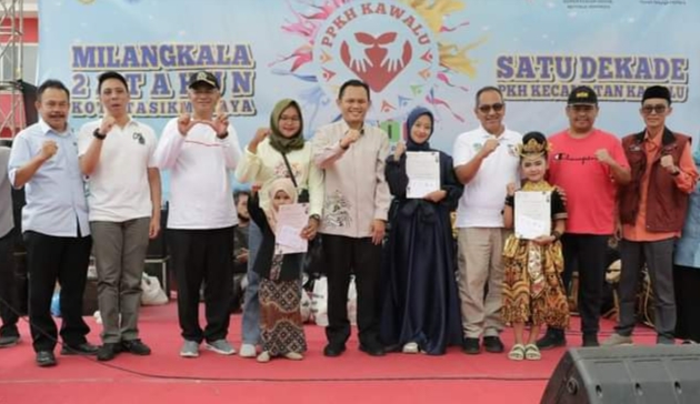 Tasikmalaya, MNP – Acara Satu Dekade Program Keluarga Harapan (PKH) Kawalu dan Milangkala Kota Tasikmalaya Ke-22 berlangsung di Halaman Parkir RSUD Dewi Sartika.