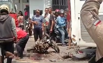 Tasikmalaya, MNP.com – Nahas, pengendara motor meninggal setelah diseruduk truk dari arah belakang, lalu bagian depan kendaraan korban menabrak bus.
