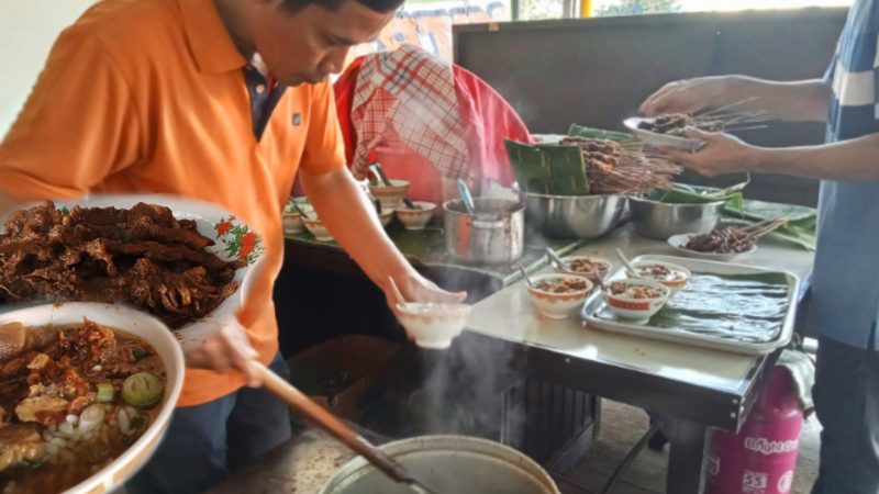 Meski disebut sebagai sate kerbau, tapi penyajiannya tidak tampak dibakar seperti sate pada umumnya.