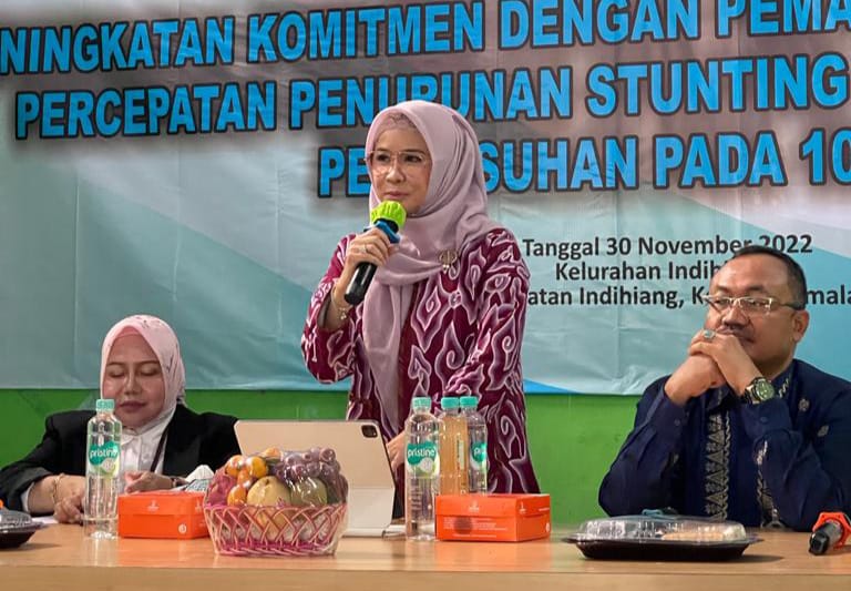Didepan Camat Indihiang, para lurah, Ketua RW se-Indihiang, kader posyandu, tokoh masyarakat dan undangan lainnya, Nurhayati mengajak berkomitmen untuk menurunkan angka stunting.