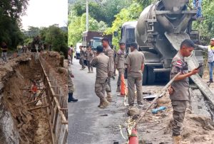 Hasudungan Munthe SE, Ketua Tim Satpol-PP mengatakan, pihaknya menerima laporan masyarakat ada semacam material Batu Krikil bercampur semen dibawa Molen yang berjatuhan dijalan Raya.