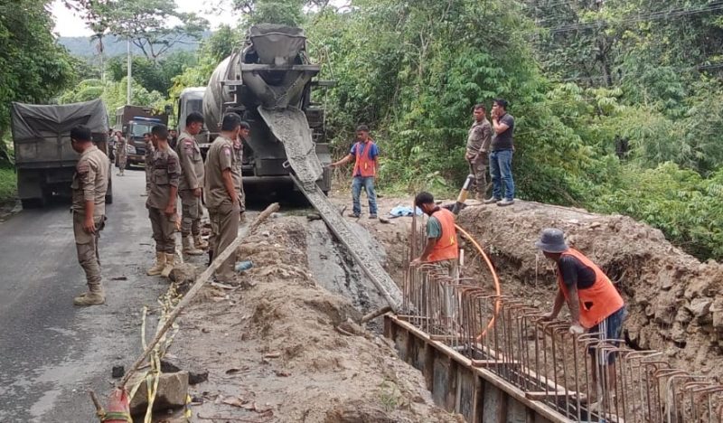 Tak hanya itu, dalam giat ini juga memonitoring lokasi pekerjaan proyek Cor Beton Tembok Penahan di pinggir Jalinsum dan lokasi Batching Plant pengolahan material.