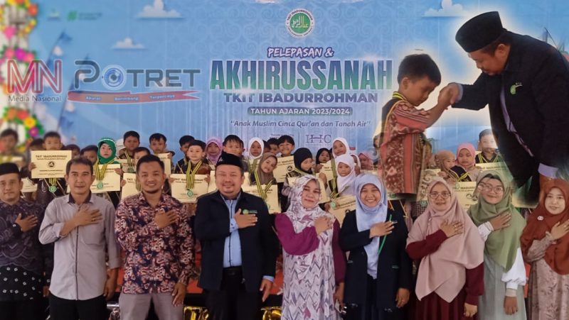 Tasikmalaya, MNP – Pelepasan dan Akhirussanah TKIT Ibadurrahman Tahun Ajaran 2203/2024 berlangsung khidmat dengan tema Anak Muslim Cinta Qur’an dan Tanah Air yang di gelar di Aula Ibadurrahman Jl.Leuwidahu Kota Tasikmalaya, Sabtu (22/06/2024).