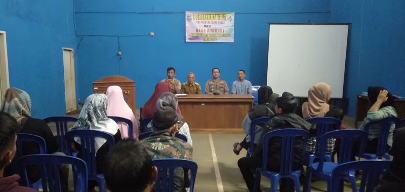 Kepala Desa Ciwangi Marpu Nandar S dalam sambutannya memberikan pesan dan harapan kepada para KPM yang mendapatkan bantuan.