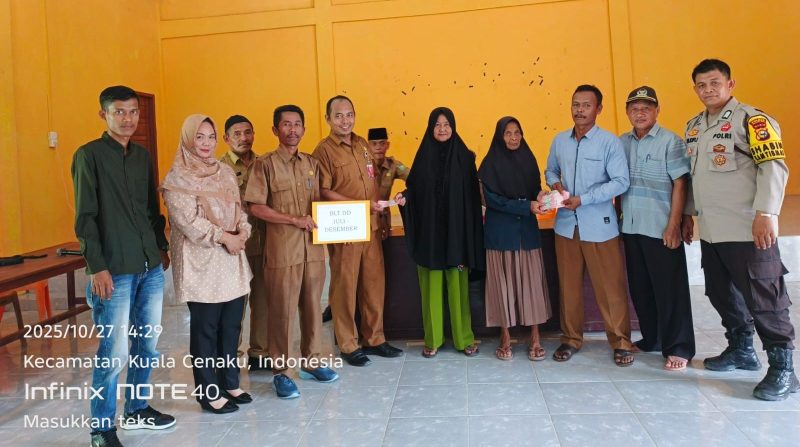 Indragiri Hulu, MNP – Pemerintah Desa Tanjung Sari, Kecamatan Kuala Cenaku, Kabupaten Indragiri Hulu, menyalurkan Bantuan Langsung Tunai Dana Desa (BLT DD) tahap kedua tahun 2025 kepada 25 Keluarga Penerima Manfaat (KPM).