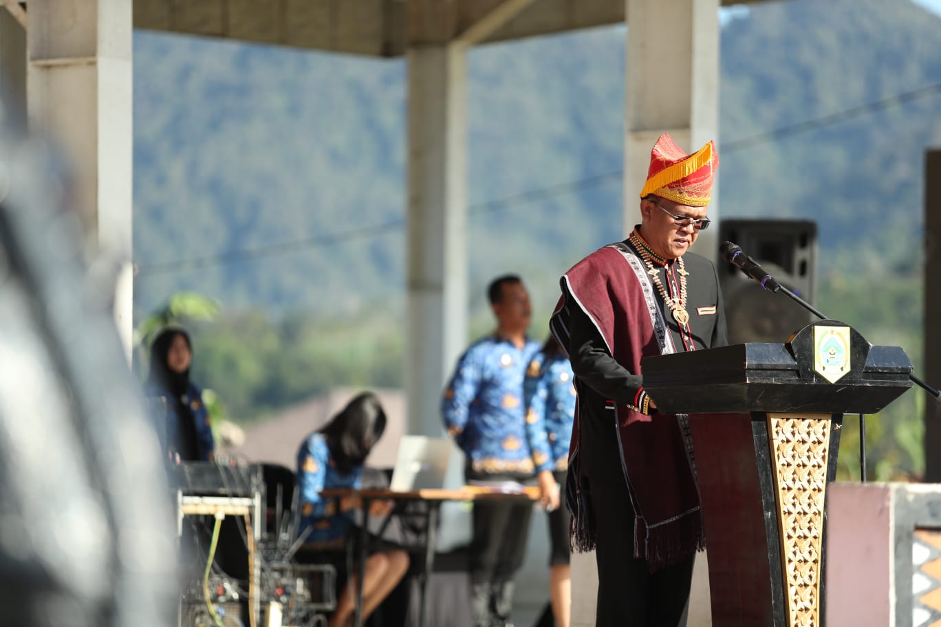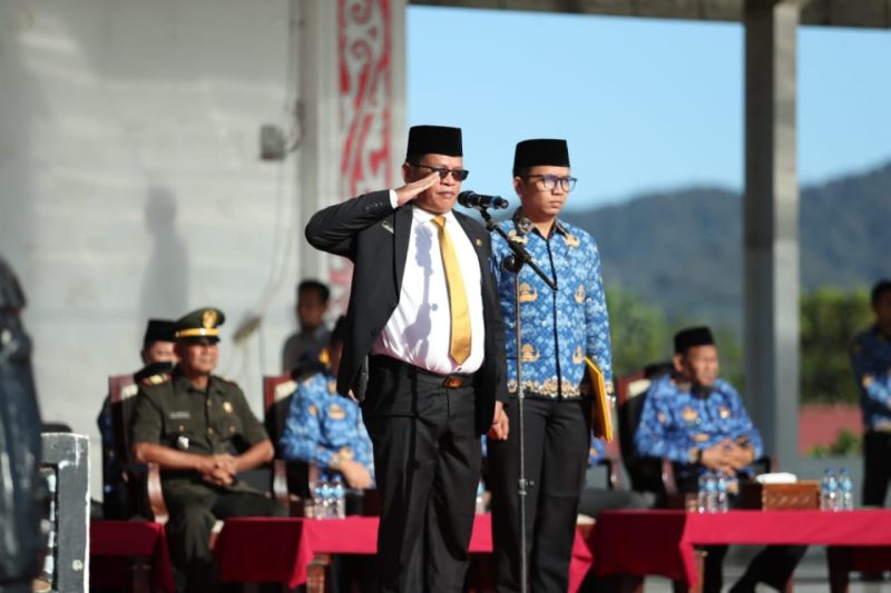 Sekretaris Daerah Pakpak Bharat, Jalan Berutu, S.Pd, MM yang menjadi Inspektur Upacara membacakan pidato Kepala Badan Pembinaan Ideologi Pancasila (BPIP) Republik Indonesia, Yudian Wahyudi.