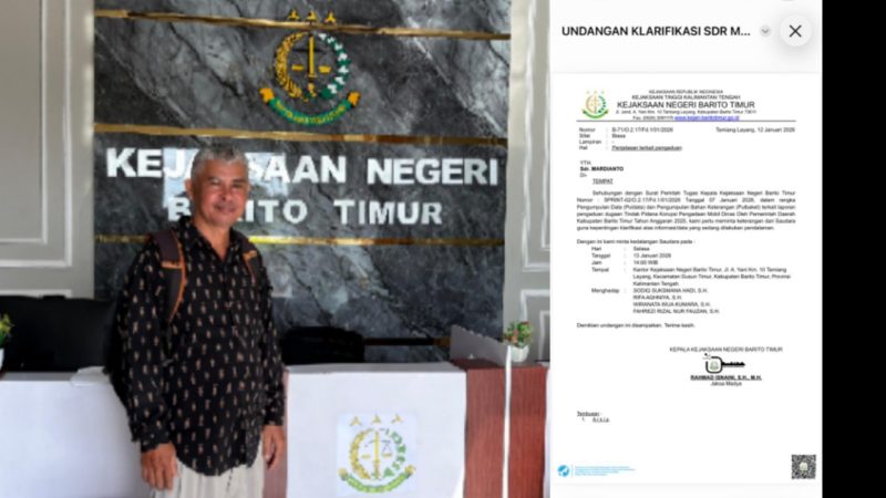 “Ini kinerja yang luar biasa saya nilai sehingga hari ini Selasa 13 Januari 2026 saya diundang oleh Kepala Kejaksaan Negeri Barito Timur pada pukul : 14.00 WIB melalui suratnya,” sambung Mardianto.