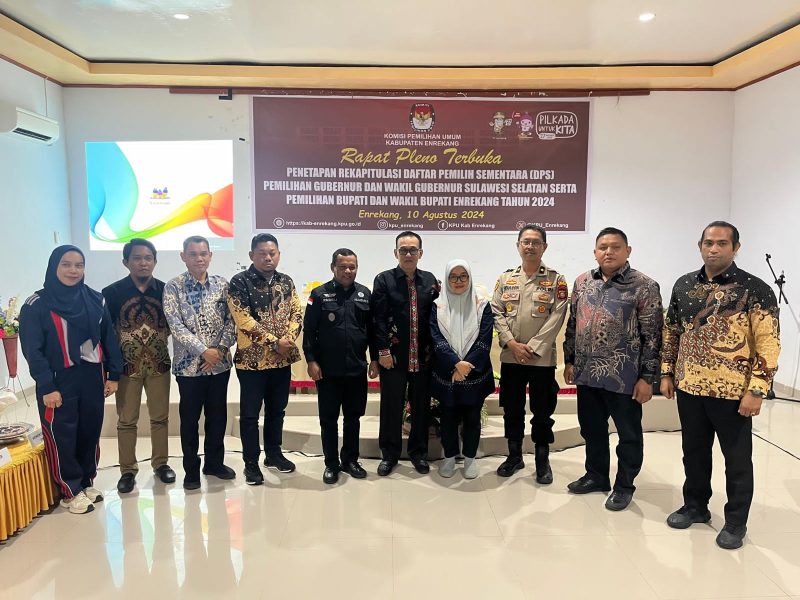 Enrekang, MNP – Komisi Pemilihan Umum (KPU) Kabupaten Enrekang melaksanakan rapat pleno terbuka untuk menetapkan rekapitulasi daftar pemilih sementara (DPS) dalam pemilihan Gubernur dan Wakil Gubernur Sulawesi Selatan serta pemilihan Bupati dan Wakil Bupati Enrekang tahun 2024.