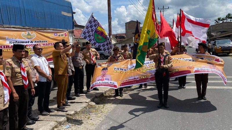Pakpak Bharat, MNP – Plt. Kepala Dinas Pendidikan Kabupaten Pakpak Bharat, Augusman Harapan Padang, ST, M.Si melepas Peserta Kirab Tangkal Napza 2024 Kwartir Daerah Gerakan Pramuka Sumatera Utara (Kwarda Sumut) di Gedung Serba Guna, Salak (23/07/2024).