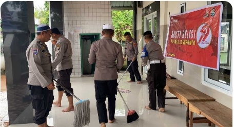 Dalam kegiatan Bakti Religi tersebut, personel Polri bersama masyarakat melakukan pembersihan lingkungan Masjid Nurul Salam, yang akan digunakan untuk pelaksanaan salat Jumat.