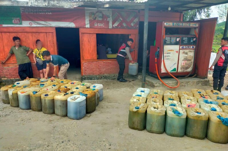 Polisi mendapati 97 jerigen yang diduga berisi BBM bersubsidi dengan jenis Bio Solar dan Pertalite. Menurut keterangan terduga pelaku bahwa minyak tersebut akan di jual atau di ecer kepada masyarakat.