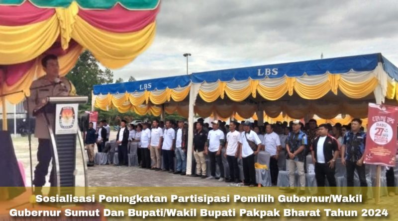 Pakpak Bharat, MNP – Kapolres Pakpak Bharat AKBP Oloan Siahaan, S.I.K., M.H diwakili Kasat Binmas Polres Pakpak Bharat AKP Eskia Pasaribu menghadiri Sosialisasi Peningkatan Partisipasi Pemilih Gubernur/Wakil Gubernur Sumatra Utara dan Pemilihan Bupati/Wakil Bupati Pakpak Bharat Tahun 2024.